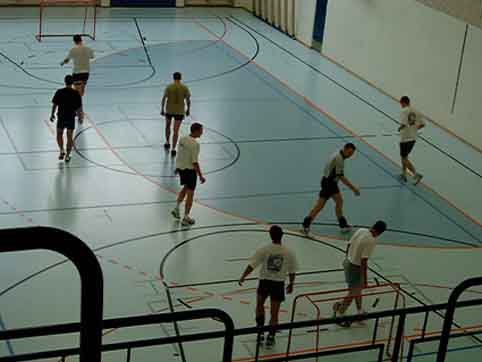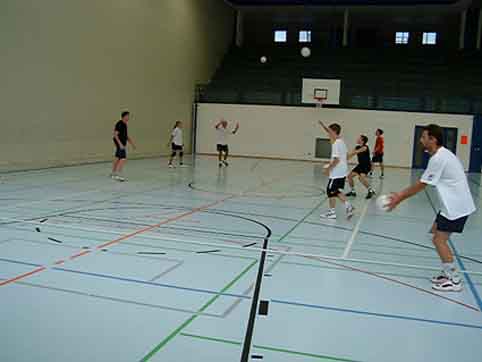 | Die Volleyballer in der Lachenturnhalle beim Trainieren | |||||