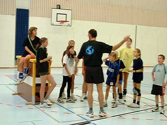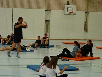 Und schon wieder der letzte Tag des Trainingslagers. Am Morgen trafen sich alle in der Halle. Volleyball, Hockey und Fussball wurde nochmals mit vollem Einsatz gespielt. Und schon hiess es wieder Aufräumen und grosses "Reinemachen".